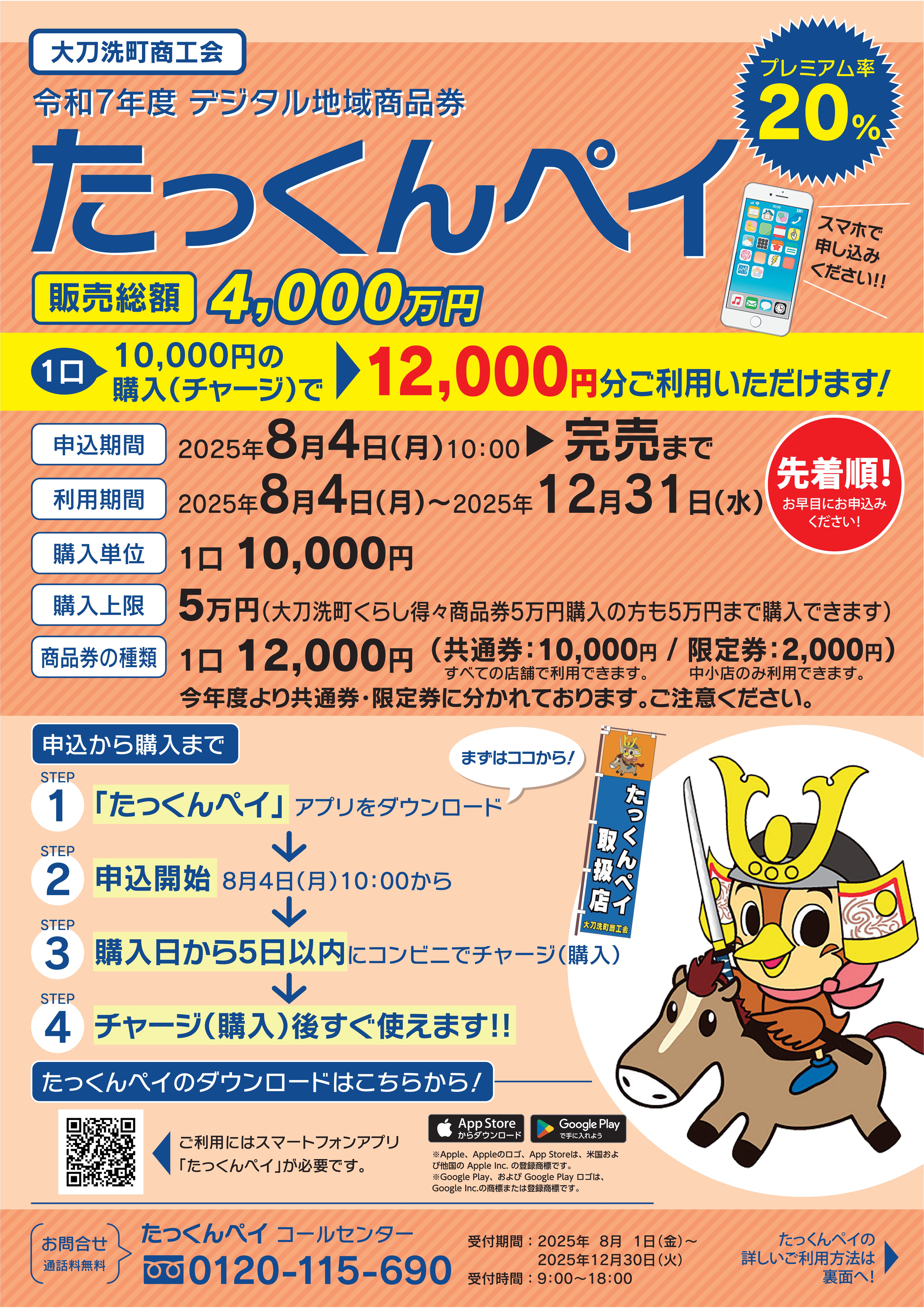 令和7年度 大刀洗町くらし得々商品券・たっくんペイ使用期限のお知らせ