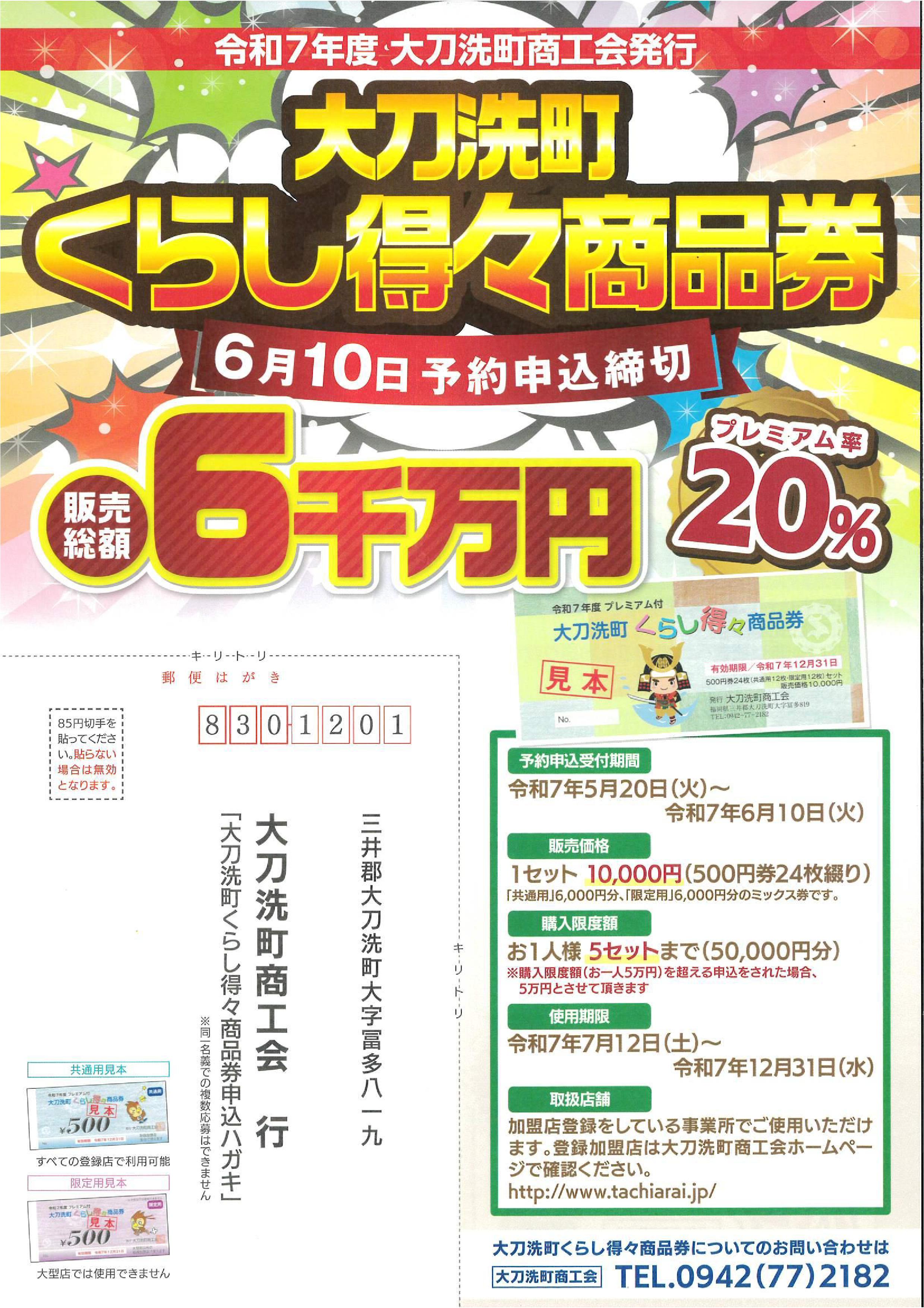 R7年度大刀洗町くらし得々商品券のお知らせ