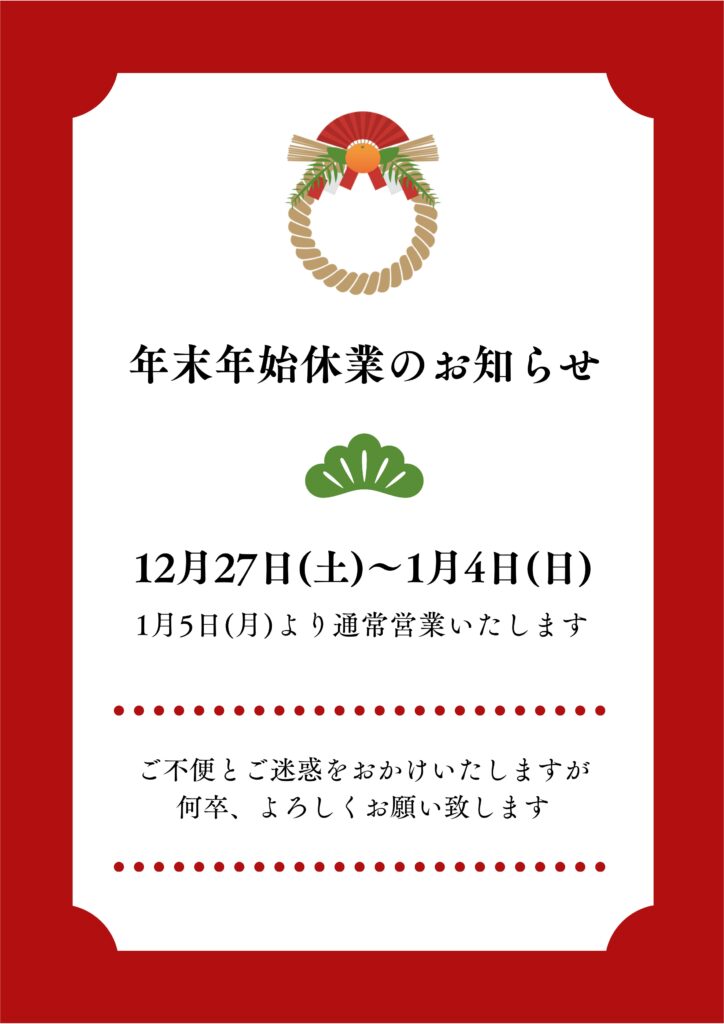 年末年始休業のお知らせ